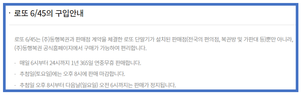 유일하게 로또 판매를 하지 않는 시간이랍니다!